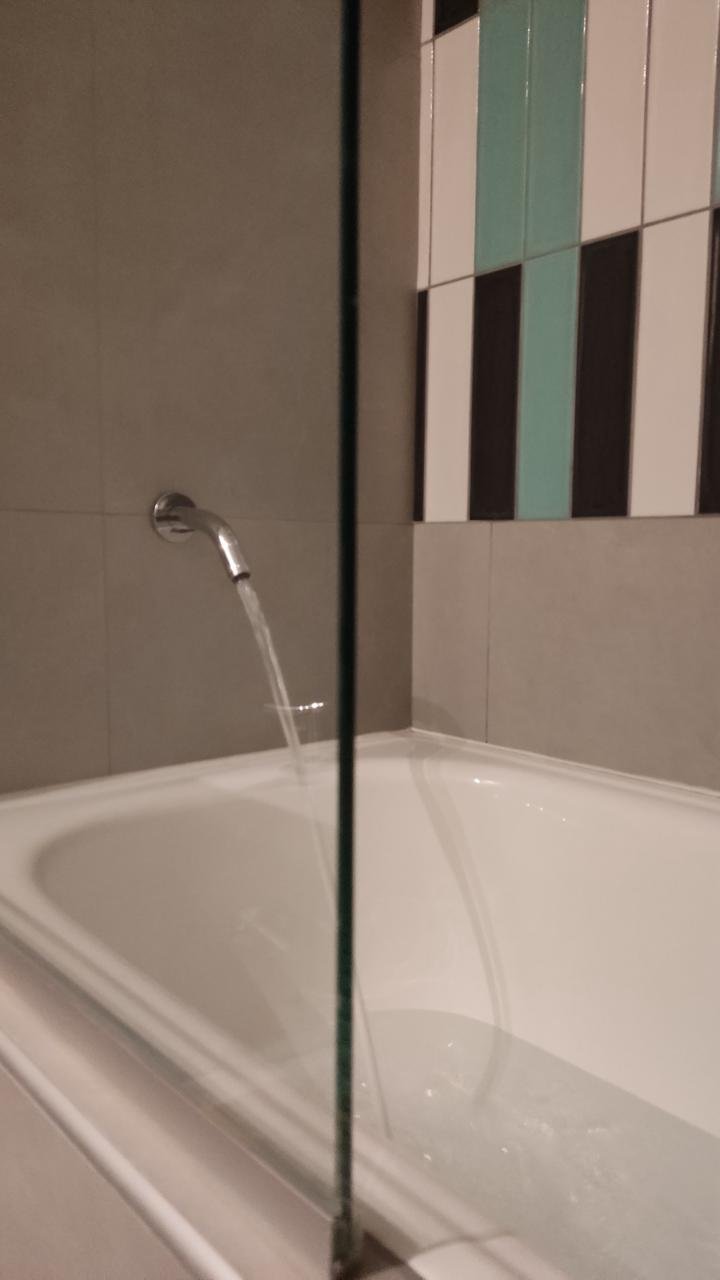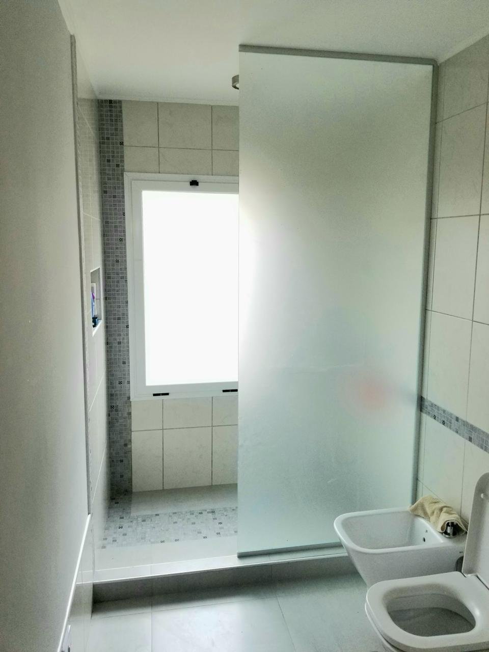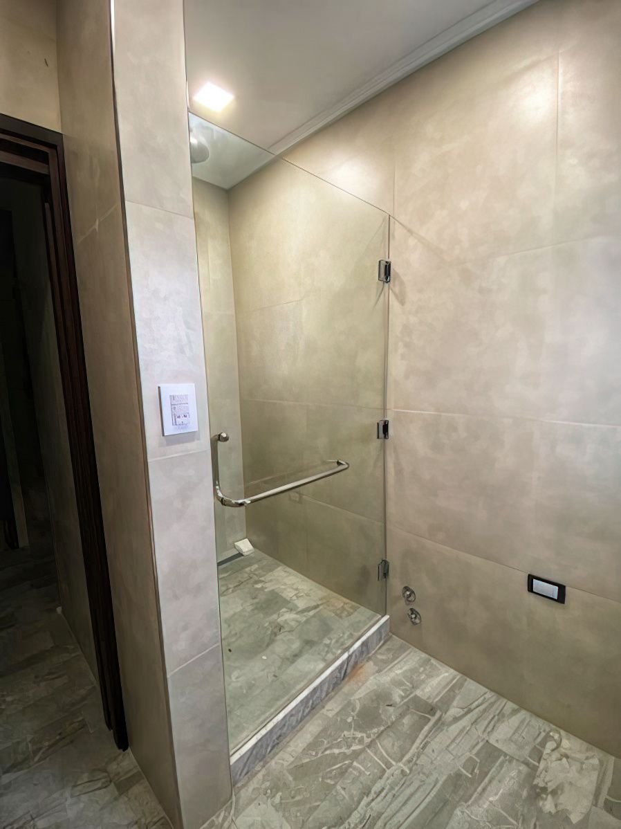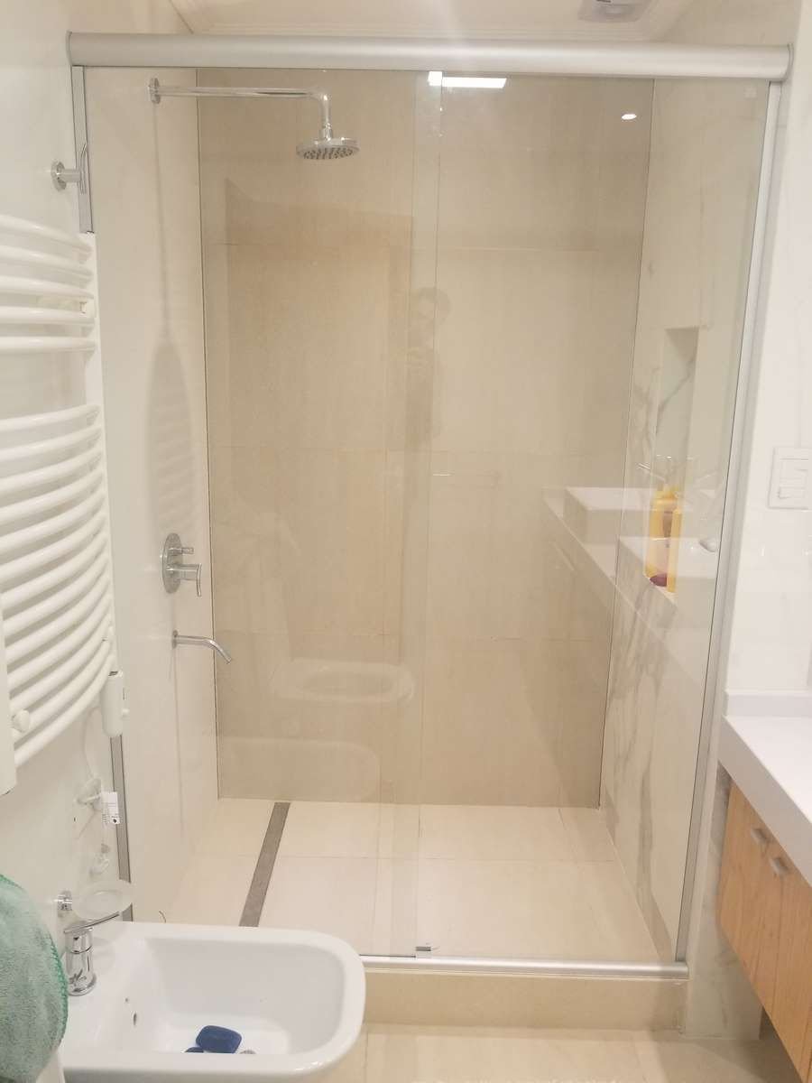 Mampara Vidrio, paño fijo y hoja batiente.