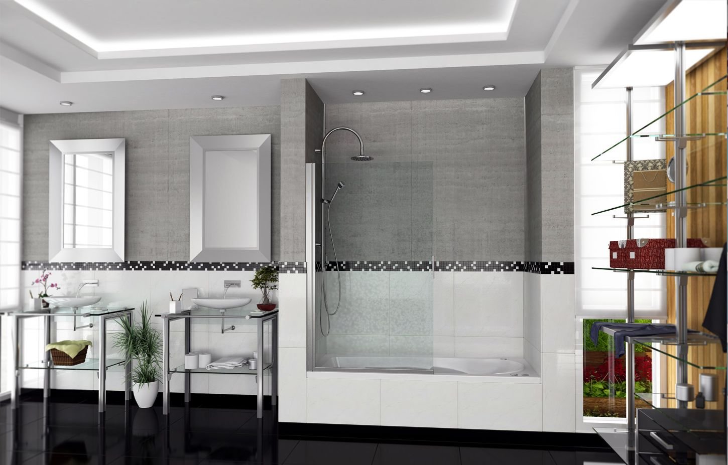Mampara Steel Box de Ducha dos Paños Fijos, dos Móviles Vanitory Quattro y Espejos