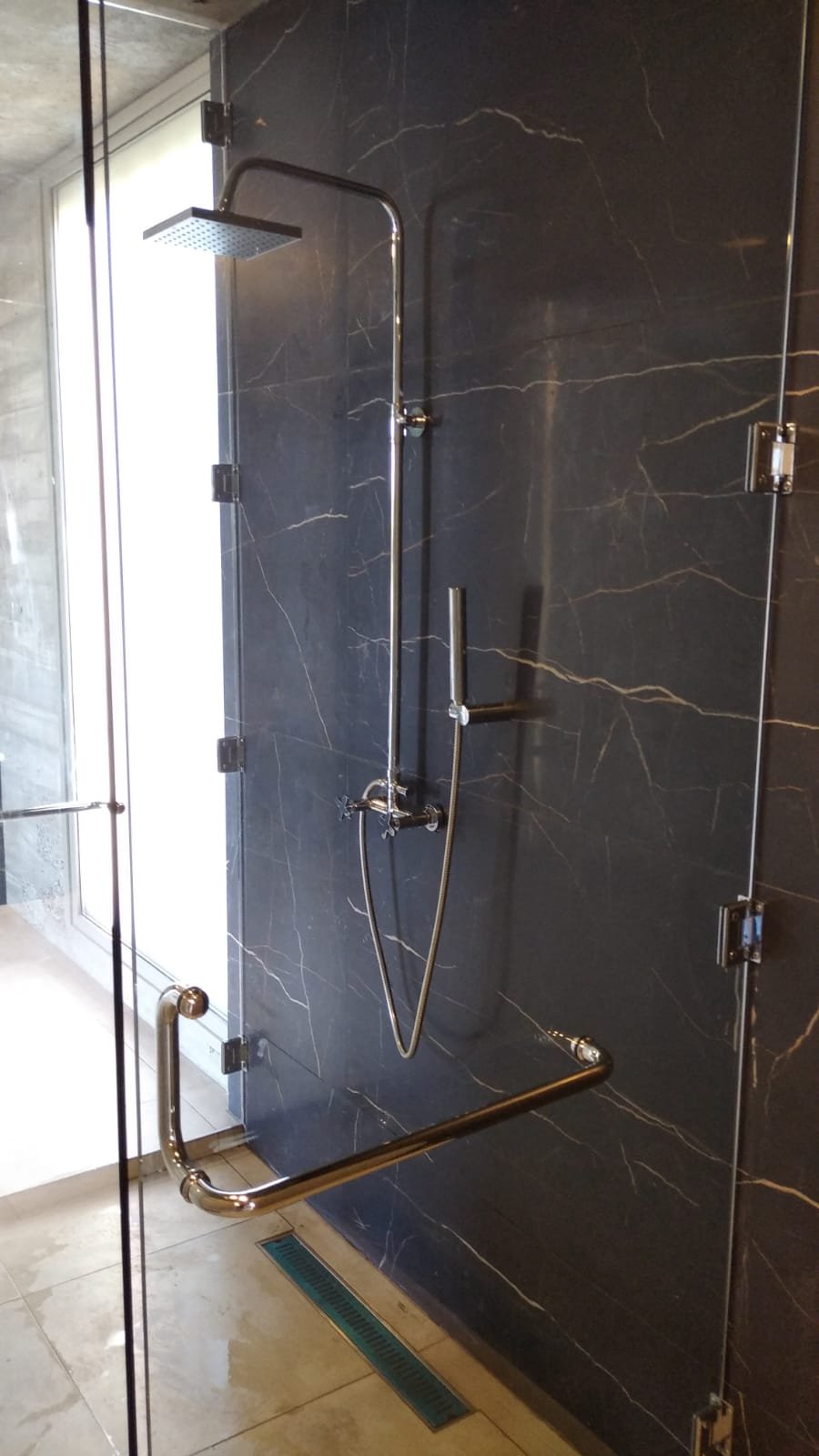 Mampara Steel Door con Mampara con Toallero y dos Tensores sobre Receptáculo